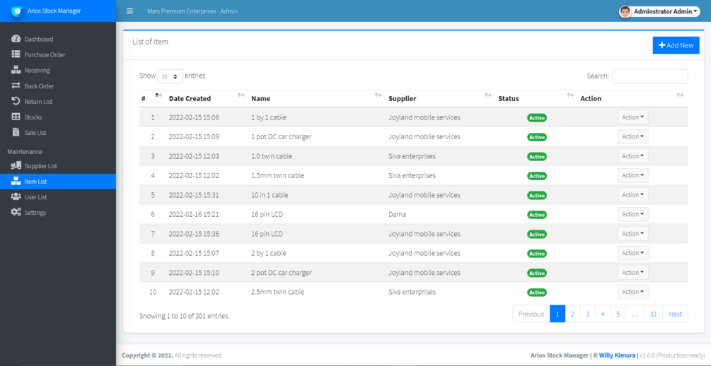 Arios Premium Stock Manager is a premium web-based stock management platform built for the modern-day stock businesses. It provides an online and automated platform for shops and/or businesses. The system can manage business purchase orders, receiving, back orders, returns, sales records, admin/staff management and secure login/logout. It’s built using PHP, MySQL, Ajax, JavaScript/JQuery, HTML/CSS, AdminLTE, and other included plugins and libraries. The delightful user interface & experience has been designed with the user and businesses in mind. The software comes packaged with its entire source code!