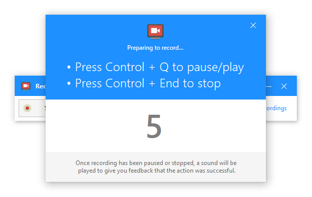 - Provides an additional countdown timer that lets you prepare adequately before your recording begins.